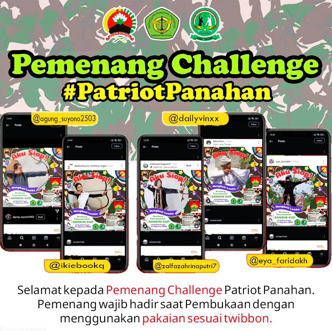 Atlet dari Kabupaten Tegal yaitu Azizul dan Dira dari Club Slawi Ayu Archery (Slarac) menjadi juara pada ajang Challenge Patriot Panahan ini.
