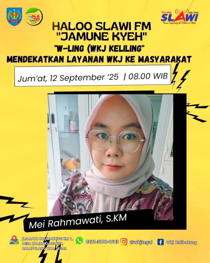 Demikian yang dikatakan oleh Ahli Pertama Penyuluh Kesehatan Masyarakat WKJ Mei Rahmawati dalam Program Halo Slawi FM Jamune Kyeh yang dipandu oleh Sofia pada Jumat, (12/09/2025) pagi.