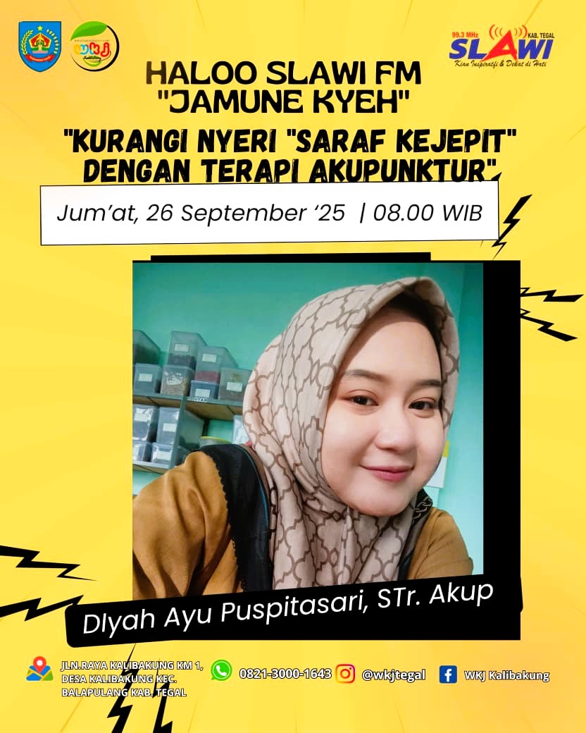 Demikian yang dikatakan oleh Terapis Akupunktur WKJ Kalibakung Diyah Ayu Puspitasari dalam Program Halo Slawi FM Jamune Kyeh dipandu oleh Sofia pada Jumat, (26/09/2025) pagi.