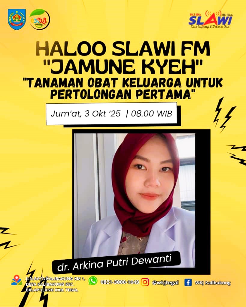 Demikian yang dikatakan oleh Dokter UPTD WKJ Kalibakung Arkina Putri Dewanti dalam Program Halo Slawi FM Jamune Kyeh dipandu Sofia pada Jumat (03/10/2025) pagi.