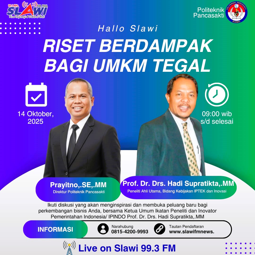 Demikian yang dikatakan oleh Peneliti Ahli Utama, Bidang Kebijakan IPTEK dan Inovasi Hadi Supratikta dalam Program Halo Slawi FM yang dipandu Sofia pada Selasa, (14/10/2025) pagi.