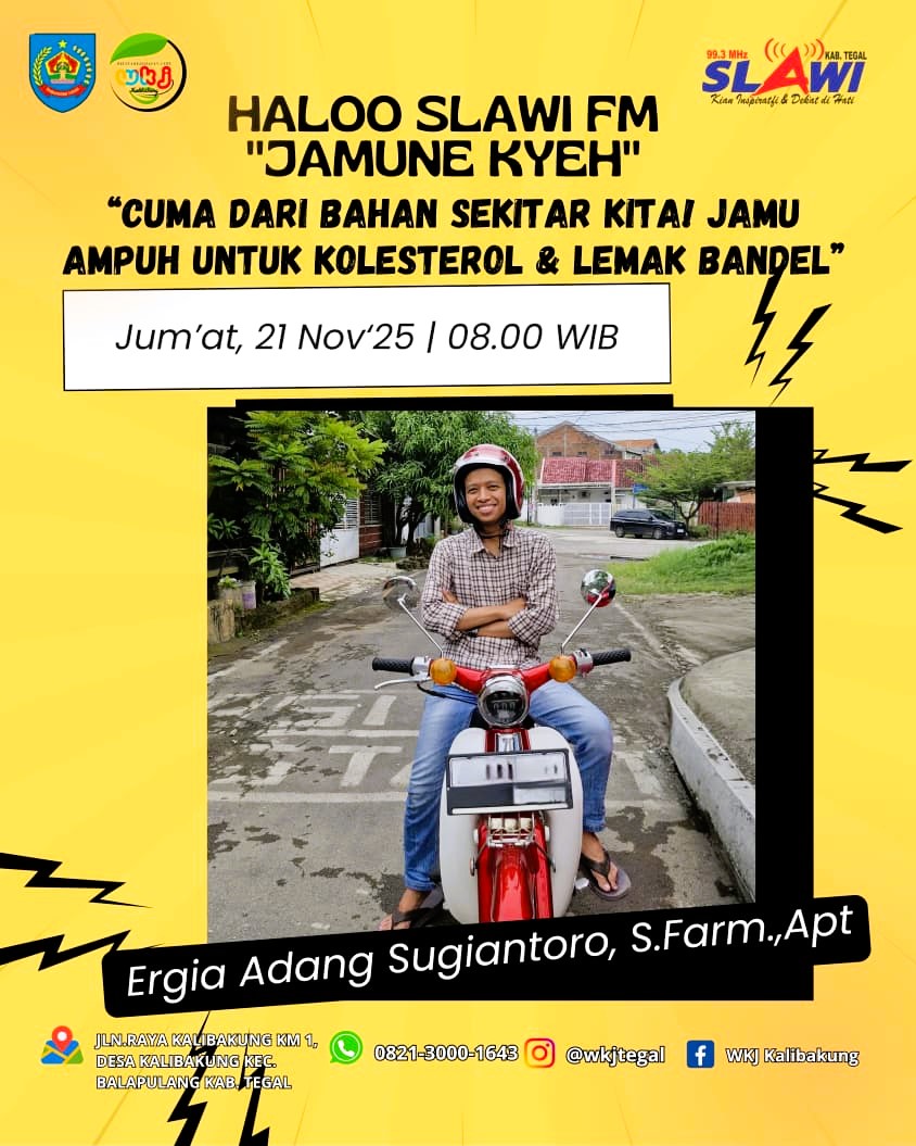 Hal ini dikatakan oleh Apoteker Saintifikasi Jamu UPTD WKJ Kalibakung Ergia Adang Sugiantoro, dalam Program Halo Slawi FM Jamune Kyeh yang dipandu Sofia pada Jumat (21/11/2025) pagi.