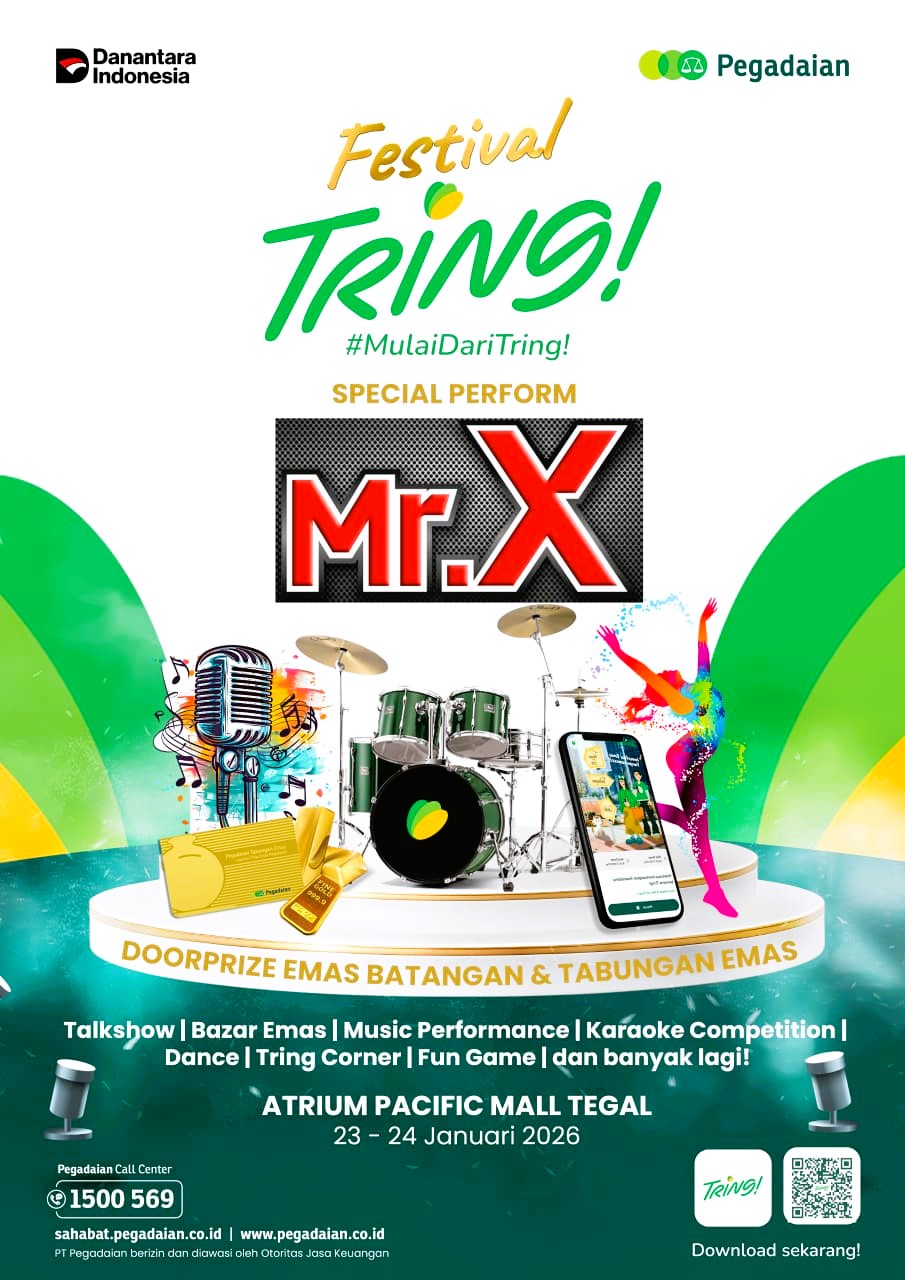 Slawi FM – PT Pegadaian menghadirkan kemeriahan di awal tahun melalui perhelatan Festival TRING! yang berlangsung pada 23 – 24 Januari 2026 bertempat di Atrium Pacific Mall Tegal. Acara ini digelar sebagai bagian dari rangkaian peluncuran aplikasi terbaru, TRING! by Pegadaian.
