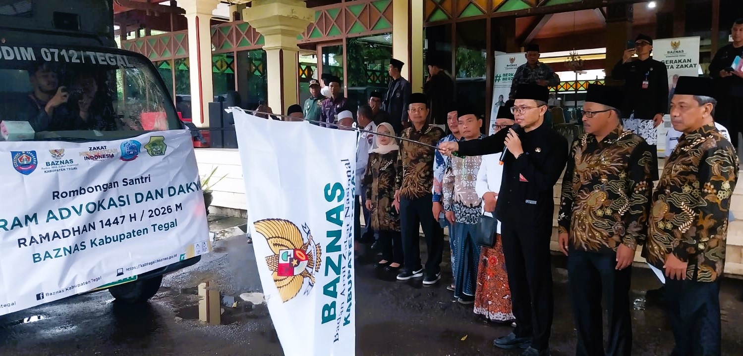 Slawi FM – Sekretaris Daerah (Sekda) Kabupaten Tegal, Amir Mahmud, mewakili Bupati Tegal secara resmi melepas 127 santri yang tergabung dalam program Safari Dakwah Ramadhan Badan Amil Zakat Nasional (Baznas) Kabupaten Tegal di Pendopo Amangkurat pada Rabu (18/02/2026) pagi.