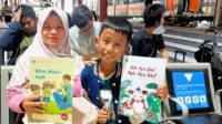 “ Kami membagikan 500 eksemplar buku cerita anak, serta buku-buku bertema kebahasaan dan kesastraan. Harapannya, buku ini menjadi teman perjalanan yang bermanfaat sekaligus mengenalkan bacaan yang berkualitas bagi anak-anak,” ujar Laily.